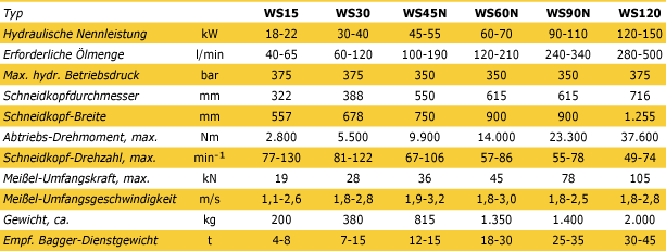 Know-how durch Erfahrung – Die TEREX | Schaeff-Anbaufräsen überzeugen weltweit durch Leistungsfähigkeit, Zuverlässigkeit und Wirtschaftlichkeit. Optimale Anpassung an die jeweiligen Einsatzbedingungen – TEREX | Schaeff-Anbaufräsen sind mit verschiedenen Hydraulikmotoren und Schneidköpfen ausrüstbar. Die Produktpalette umfasst sechs Typen von Anbaufräsen mit hydraulischen Antriebsleistungen von 15 kW, 30 kW, 45 kW, 60 kW, 90 kW und 120 kW.